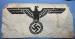 Original period manufacture. Black embroidery on white cotton, cut from a roll. Staining on one side.