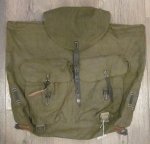 Original period manufacture. Feldgrau canvas pack with two external pockets, black leather straps. Hooks on the reverse so it can be mounted on to the A-Frame. Unissued condition.