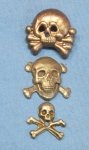 Original period manufacture. Lot of three stamped alloy totenkopf insignia, top skull is from a Panzer tab.