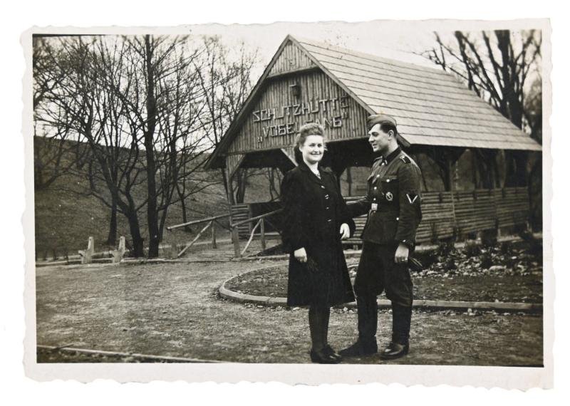 In a very nice condition a Dutch Waffen-SS Picture of a SS soldier visiting the Ordensburg Vogelsang.The picture comes in a size 4x6cm approximatly and is printed in Nijmegen Holland.