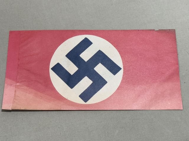 Unused 100% original paper Nazi flag. The flag size is approx. 9.25 x 4.5 inches.