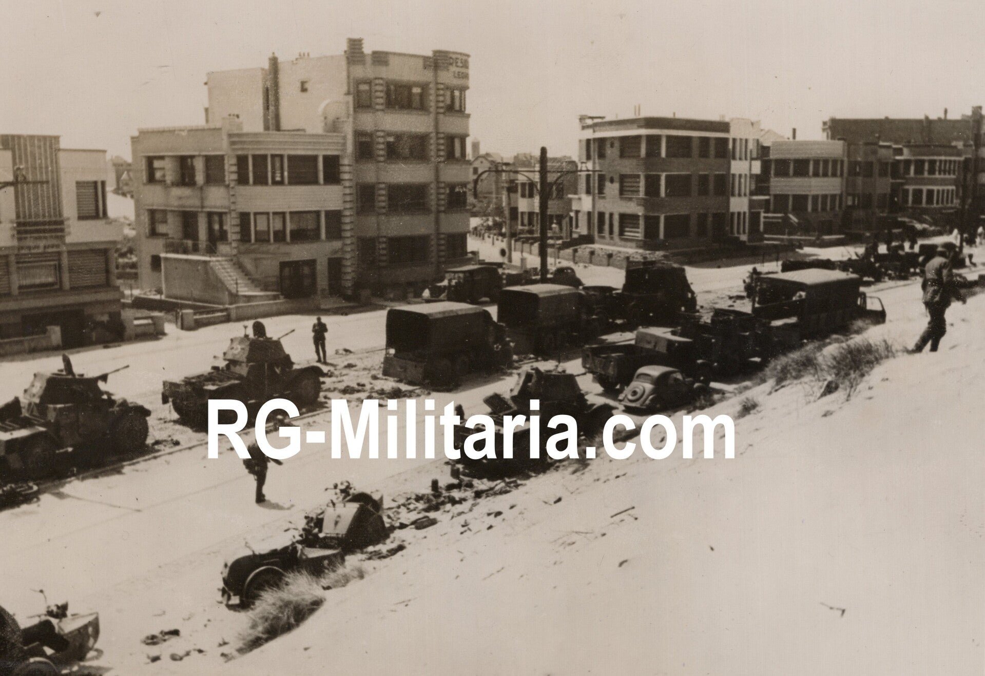 Original WW2 German Press Photo - Abandoned British tanks and trucks in La Panne, Belgium (1940)