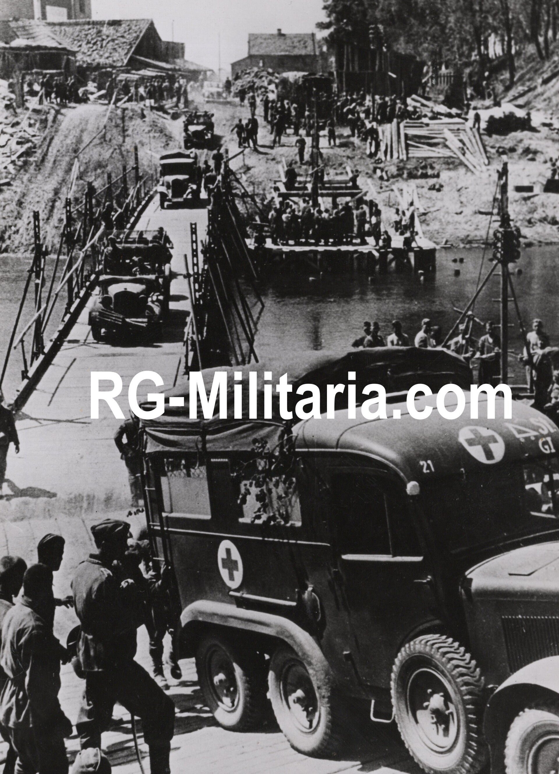 Original WW2 Belgian Press Photo - Medic Wehrmacht truck crosses a bridge at the Eastern FrontApproximately 18 x 13 cmOriginele Wo2 Belgische Persfoto - Medische wagen steekt een brug over aan het oostfrontOngeveer 18 x 13 cm