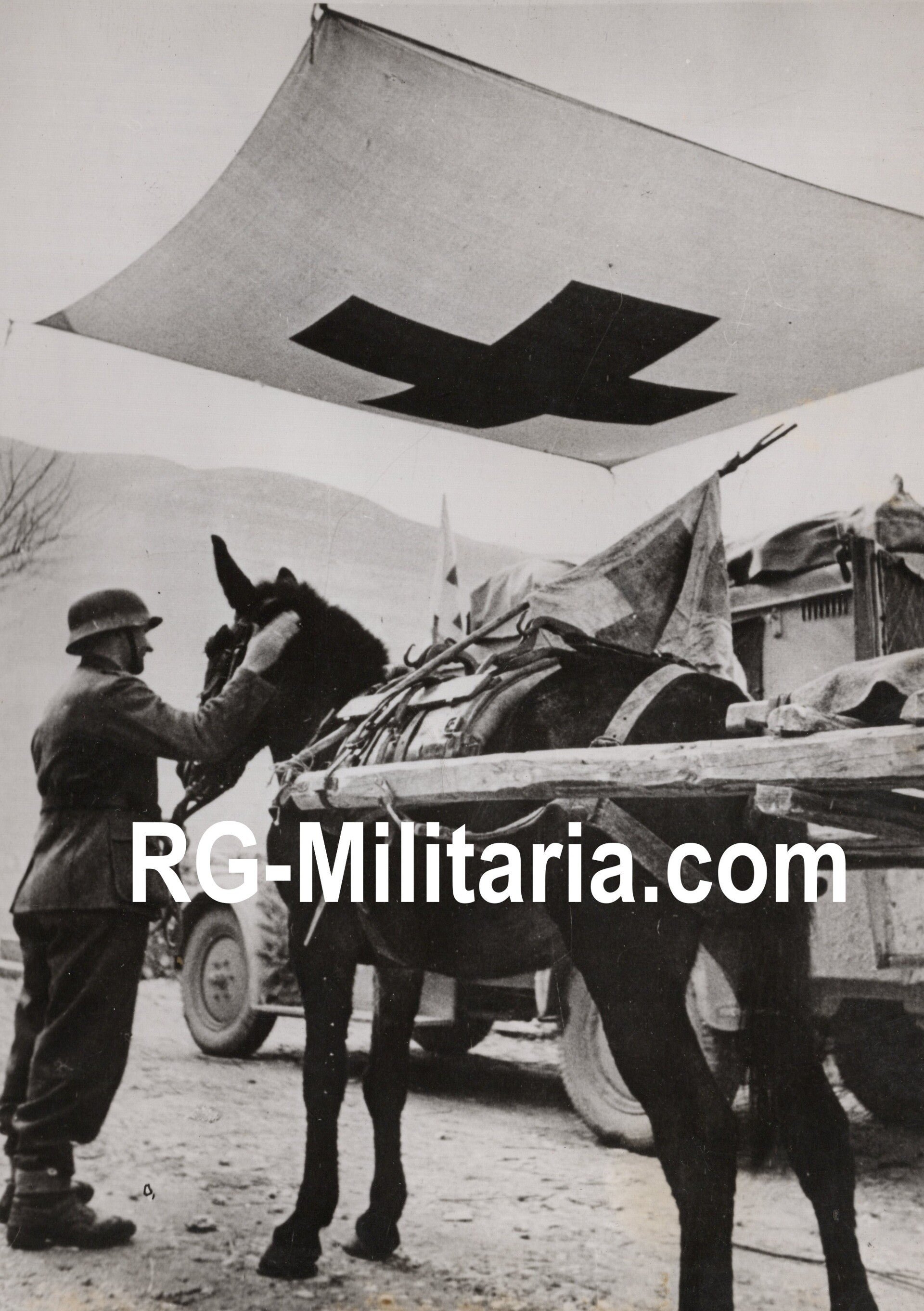 Original WW2 German Press Photo - Donkey used by medic troops (1944)