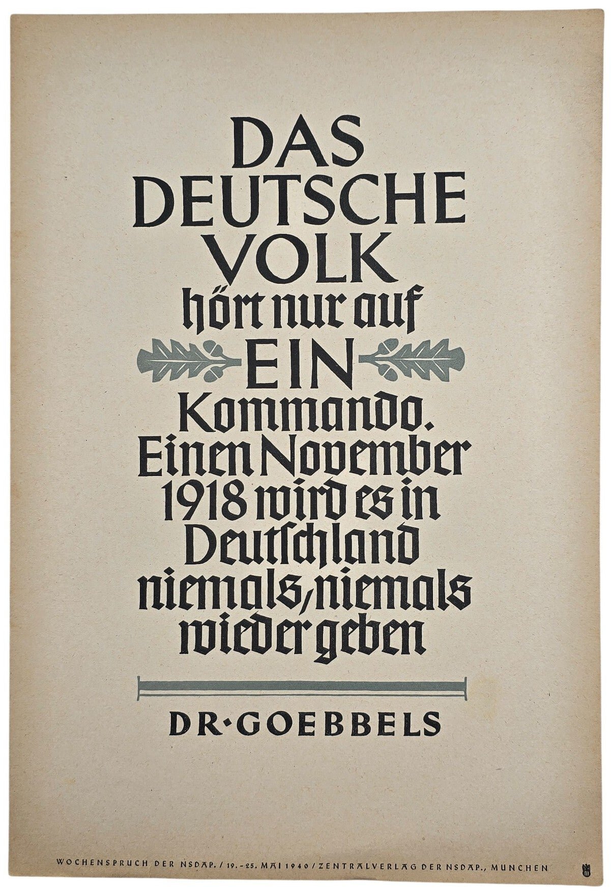 Original WW2 German Poster - NSDAP Wochenspruch folge 19 Mai, Dr. Joseph Goebbels (1940)