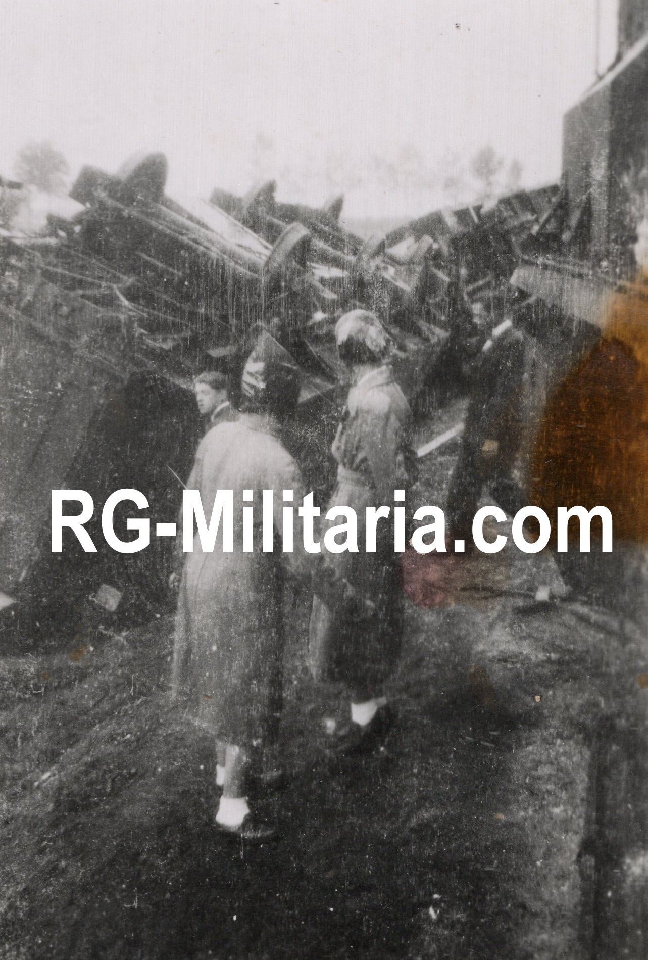 Original WW2 German Photo - Dutch tourists visit the derailed panzer train at Mill, Holland (1940)Approximately 6 x 9 cmOriginele Wo2 DuitseFoto - Nederlandse touristen bezoeken de ontspoorde panzertrein bij Mill, Nederland (1940)Ongeveer 6 x 9 cm