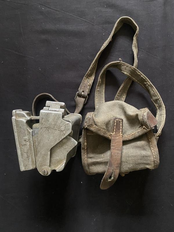 This is a nice WW2 Czech ZB26-30 magazine loader and its canvas/leather pouch which has its carry strap.