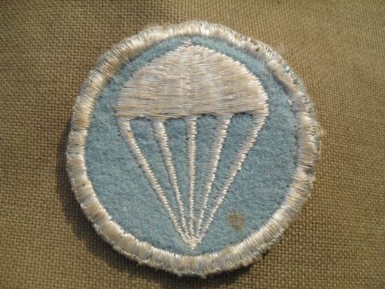An original early wartime U.S Parachute Infantry cap badge.Silk embroidered on a light blue (denoting infantry) wool base, the reverse side is finely woven linen, a removed from cap example with light service wear and the odd blemish.**Sorry UK sale only**