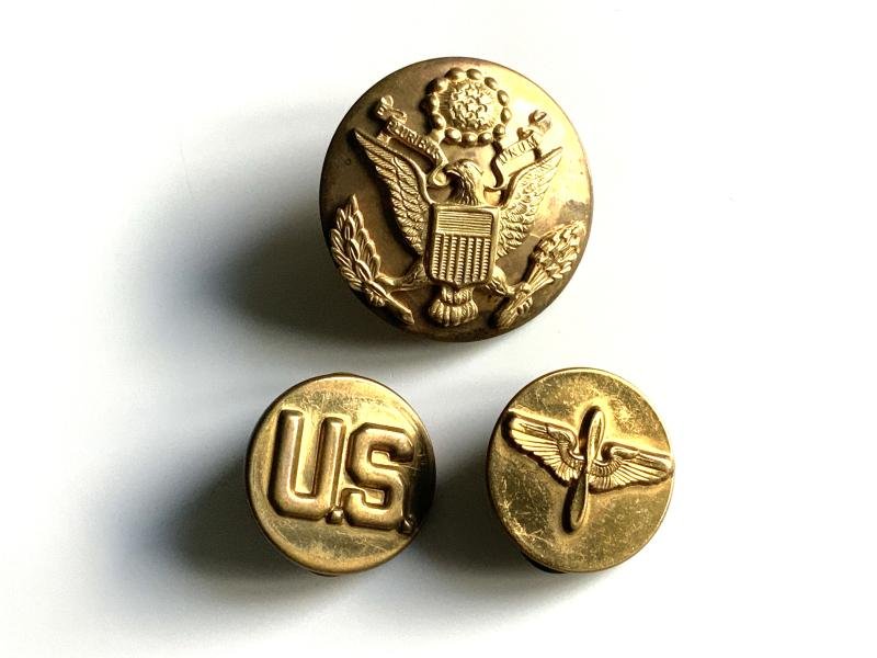 Hear we have a set of USAAF Enlisted Branch of Service with clutch back fittings together with enlisted Cap Badge with screw back fitting. With age and service wear.