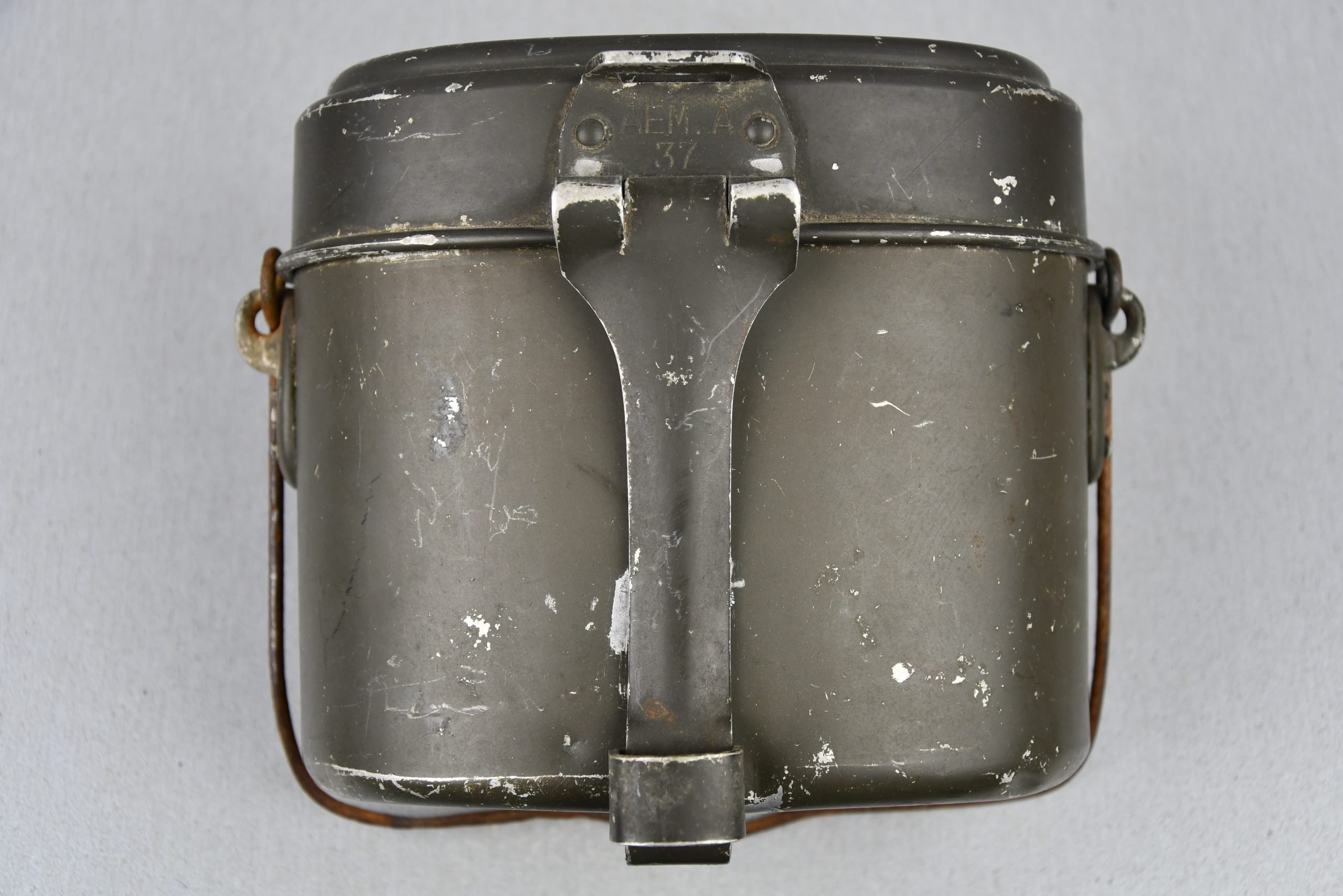 Early war mismatched Wehrmacht mess kit in very good condition, still retaining much of its green coating. Lid marked AEMA 37 and bottom ESB 34 (Very early!).