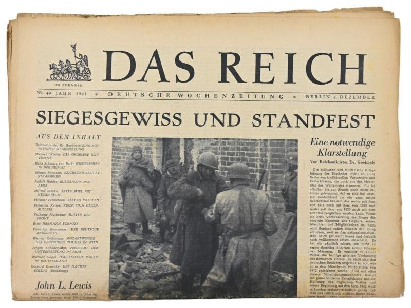 In a nice used condition a German Newspaper 'Das Reich' dated December 1941.The paper comes with a very nice header.