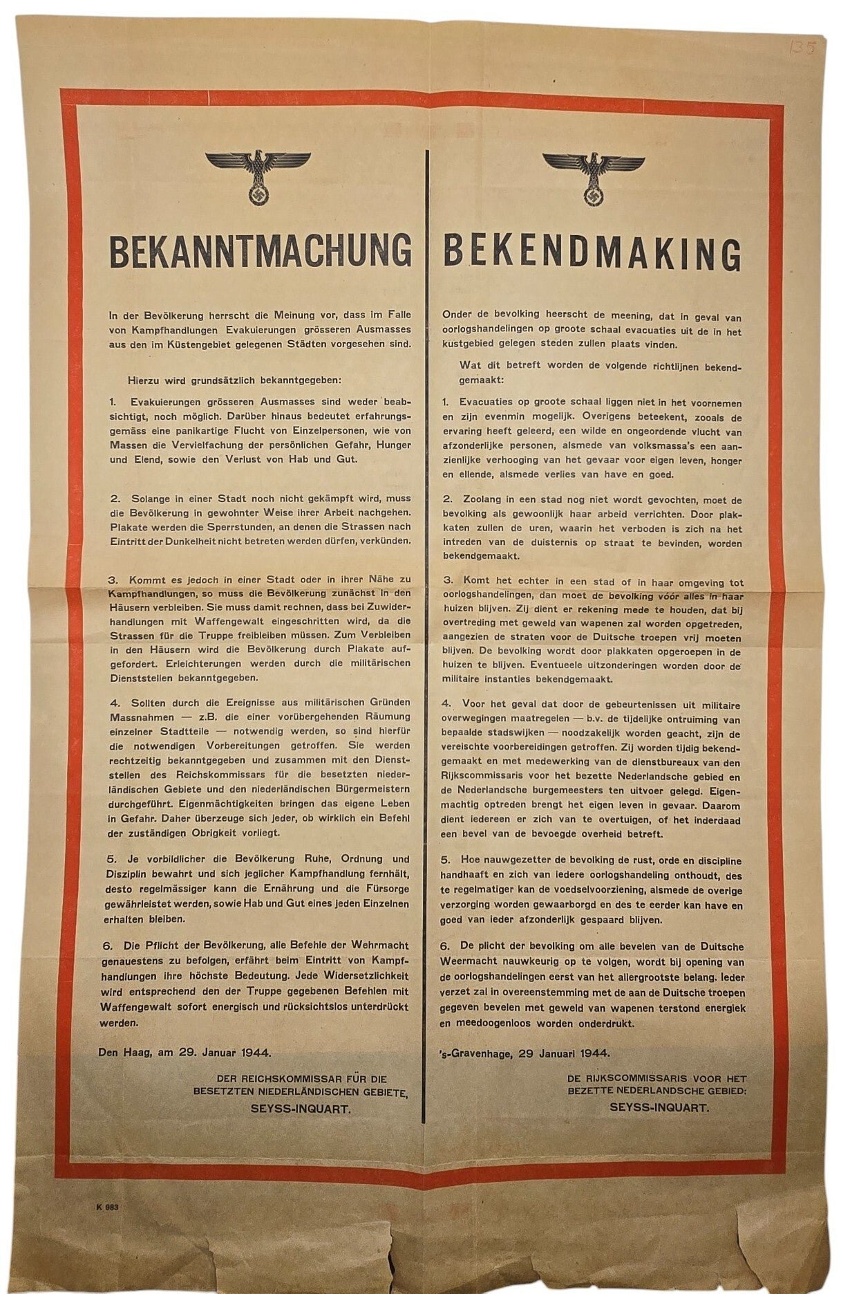 Original WW2 Dutch Poster - Notice against civilians, Seyss-Inquart, The Hague (1944)