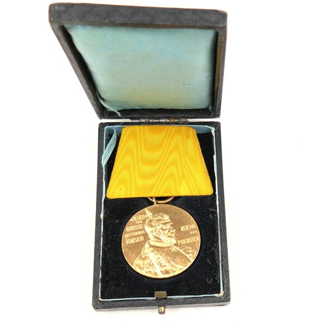 Cased Prussian Centenarmedaille 1897. The 'Centenarmedaille' (officially called: 'Medaille zur Erinnerung an des Hochseligen Kaisers und Königs Wilhelm I., des Großen, Majestät') is complete with its original confectioned yellow ribbon and its rarely seen original box of issue. The etui is in good condition. Nice set in very good condition!