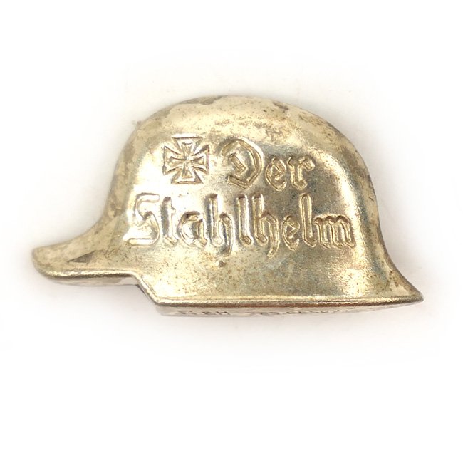 'Der Stahlhelm, Bund der Frontsoldaten' Civil Member Pin (Zivilabzeichen). 'Der Stahlhelmbund' was conceived as a national veterans' organization by 'Franz Seldte' in November 1918. The member pin is complete with a functional pin-back system. The pin is nicely maker marked with 'N&H' and 'Ges.Gesch.' marked. Nice original example in good used condition!