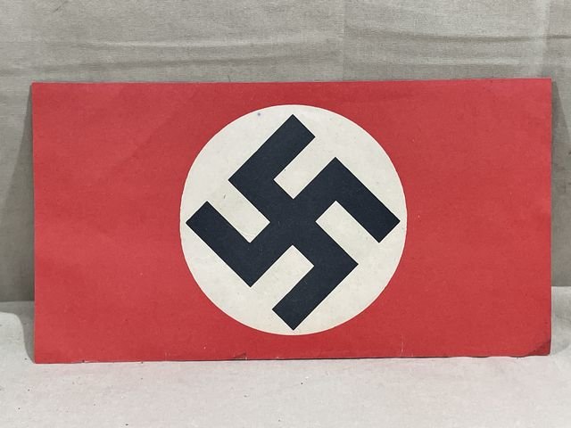 Unused 100% original paper Nazi flag. The flag size is approx. 9 x 4.75 inches.