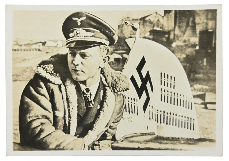 In a very good condition a German Knight's Cross Recipient Postcard of Luftwaffe Major Oesau, Recipient of the Knight's Cross of the iron cross with Swords and Oakleaves.