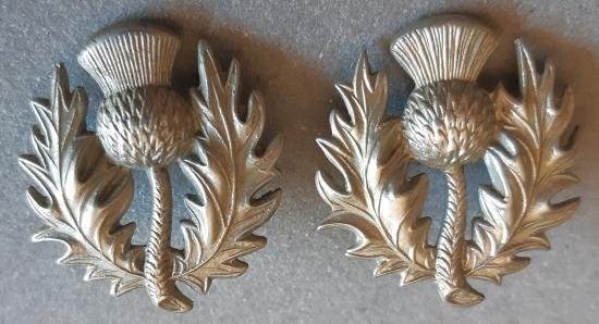 BRITISH - 15th London RVC (London Scottish) Pair White Metal Collar Badges (Churchill 1959)
