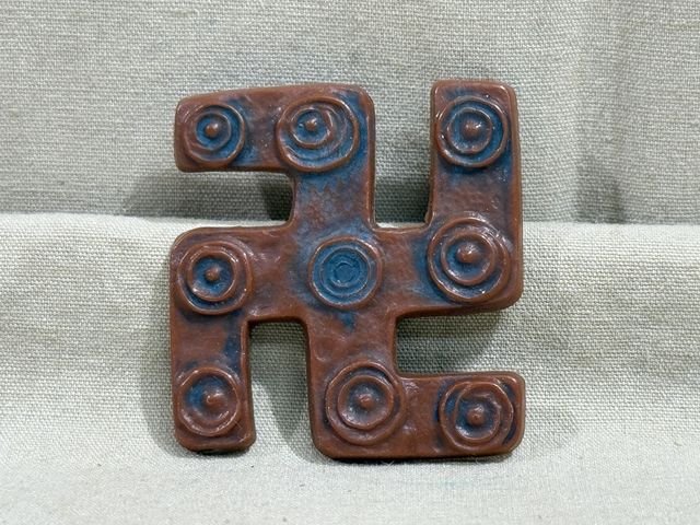Nice 100% original example made out of brown plastic. Missing the pin.