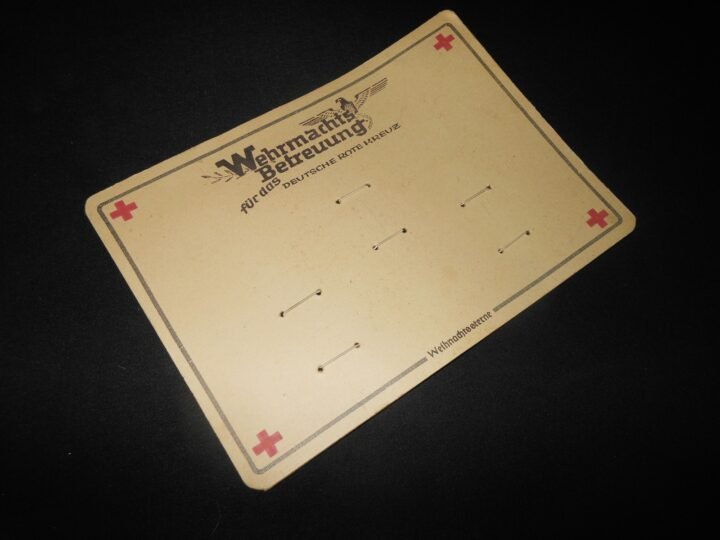 You are bidding on a VERY NICE original WW2 German Deutsches Rotes Kreuz (DRK) 'Weihnachtssterne' (Christmas stars) display card, marked 'Weihnachtsbetreuung fΓΌr das Deutsche Rote Kreuz'.These DRK 'Weihnachtsbetreuung' items were typically associated with wartime welfare and seasonal fundraising, where small holiday pieces (such as Christmas stars/ornaments) were distributed or sold through canteens and similar support channels, with proceeds benefiting the German Red Cross effort.Made of heavy paper/card stock, this display card is in VERY NICE condition overall for its age. Card shows light handling wear and age toning, with the original elastic bands from prior contents, but there are NO ornaments/stars included (CARD ONLY). Overall a NICE example that displays well.. A PERFECT item for any collection or display!