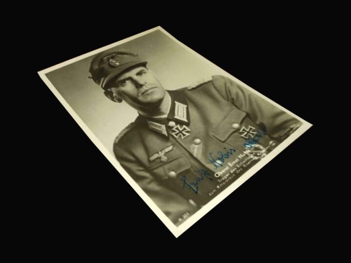 You are bidding on a SUPERB and 100% original WW2 German Wehrmacht autographed postcard photo of Oberst Ernst Nobis!Unlike most of the autographs you see, this is a WARTIME signed photo postcard (not post-war).Ernst Nobis (1901 β 1963) was an Oberst in the Wehrmacht during World War II who later served in the Austrian Bundesheer. He was also a recipient of the Knight's Cross with Oak Leaves, earned for gallantry on the Eastern Front.Made of heavy card, this postcard is in EXCELLENT condition! Featuring a photographic image of Ernst Nobis, it is signed in ink. Some marks and wear due to the age, but nothing that detracts. 100% original, it wouldlook EXCELLENT framed! A PERFECT addition to any collection or display!