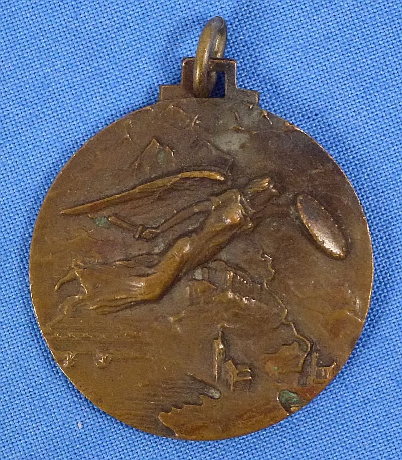 Very good condition, with some spots and verdigris. The medal is lacking the ribbon.