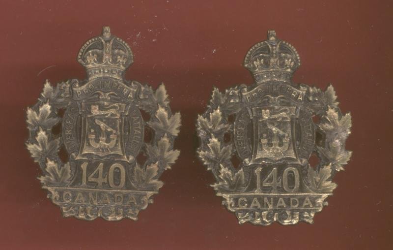 Canadian 140th New Brunswick Bn. WW1 CEF collar badges