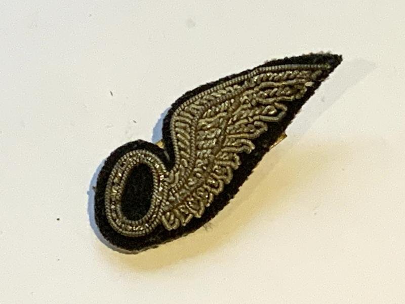 WWII RAF mess dress Observer Wing in bullion thread with a single ribbon bar sewn to the back,In good conditionMeasures 1 7/8' x 3/4'