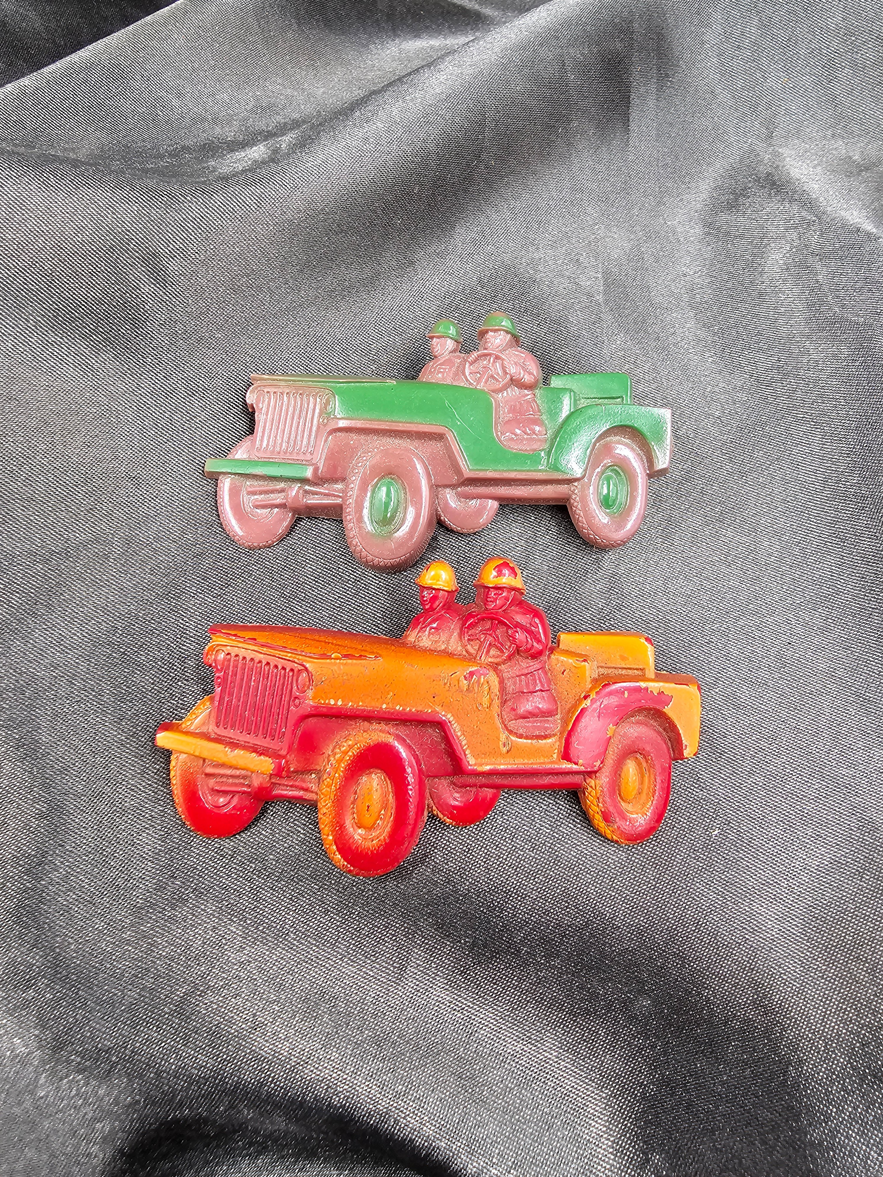 WWII CELLULOID WILLYS JEEPS SWEETHEART BROOCHES