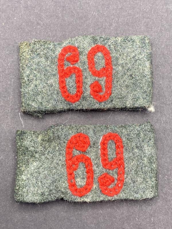 Original WW2 German army Artillery Regiment 69 slip on titles. In very good condition.