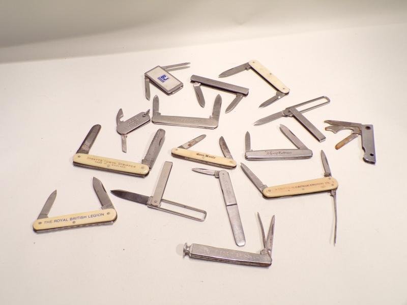 14 various Advertising Knives of various ages from late Victorian to contemporary.Lot 25Ship to UK mainland only, proof of age required on purchase, over 18's only.