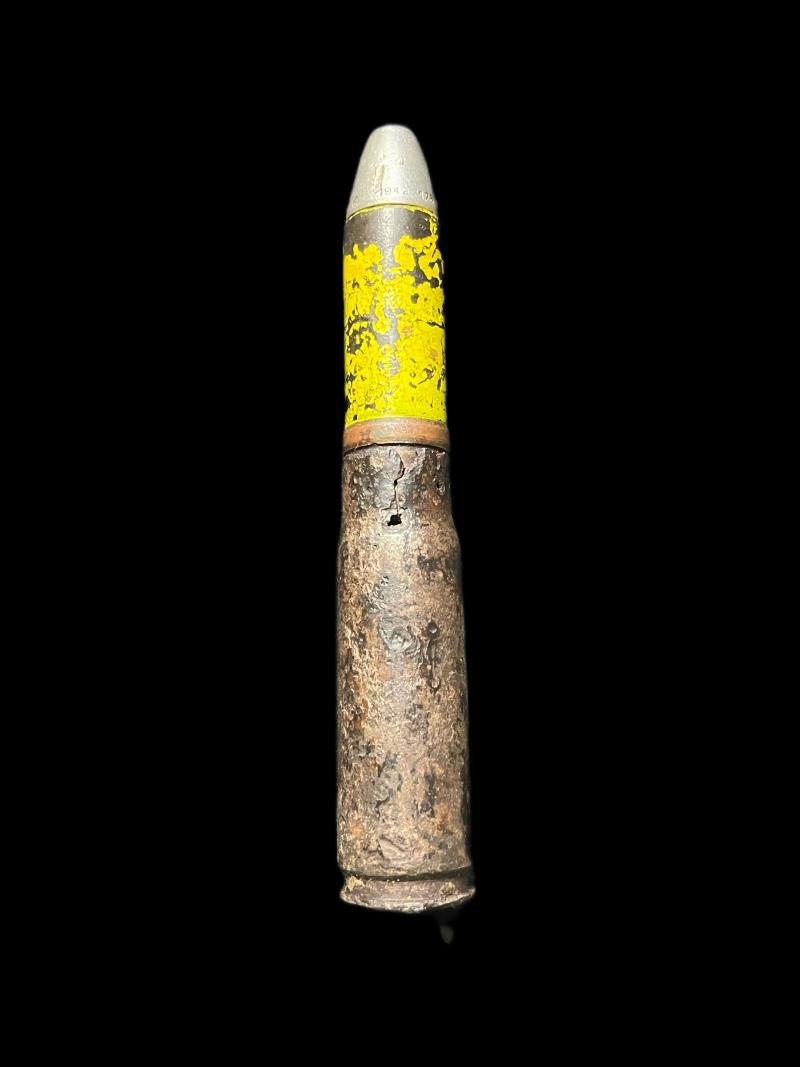 This is a WW2 German Luftwaffe 20mm cannon round (inert), the fuze is able to unscrew and is dated 1942. UK Sales only.Check out our YouTube channel below.https://m.youtube.com/results?sp=mAEA&search_query=chase+militaria+