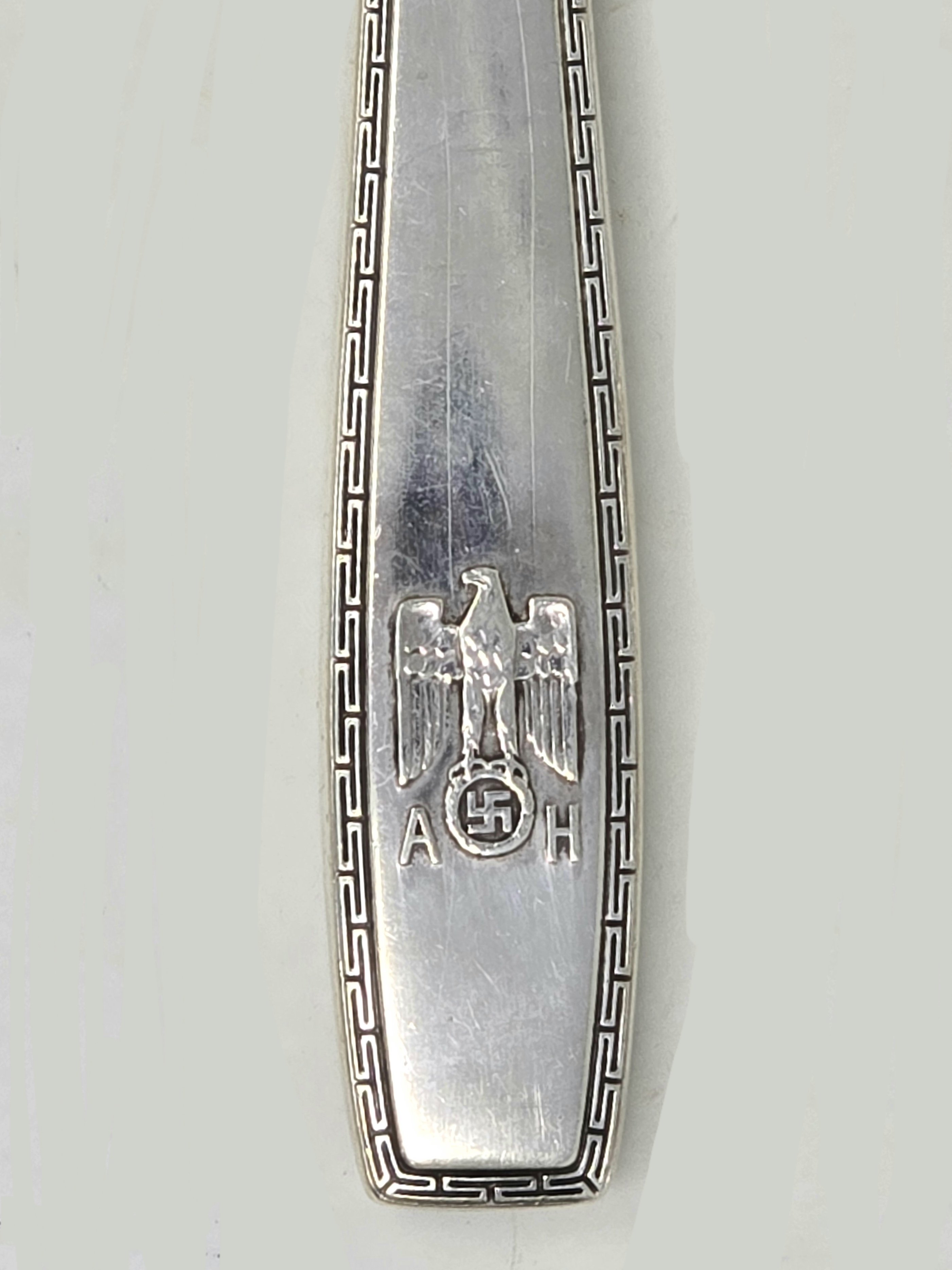This is a fine piece of Hitler silverware, consisting of a dinner knife in the formal pattern. A beautiful artifact, coa accompanies.