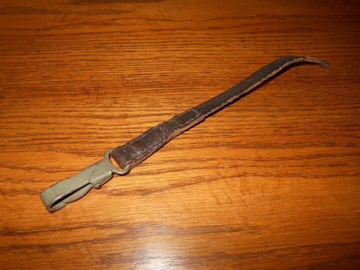 You are bidding on a GOOD example of a WW2 German Wehrmacht M31/M42 Leather Canteen Strap!The M31 canteen was based on the M1893 and M1907 canteen which were used throughout WW1.These were originally manufactured in aluminum, but as aluminum was required for use in other equipment (aircraft, for example), they were then re-designed to be manufactured in steel. For tropical climates, the canteen was made of pressed wood with canvas straps.Made of pig skin leather and steel, this canteen strap set is in VERY GOOD condition for its age. Some marks and wear throughout, as but nothing that detracts. The steel clip is maker marked, and retains 95% original paint. Would make a SUPERB addition to any collection or display!