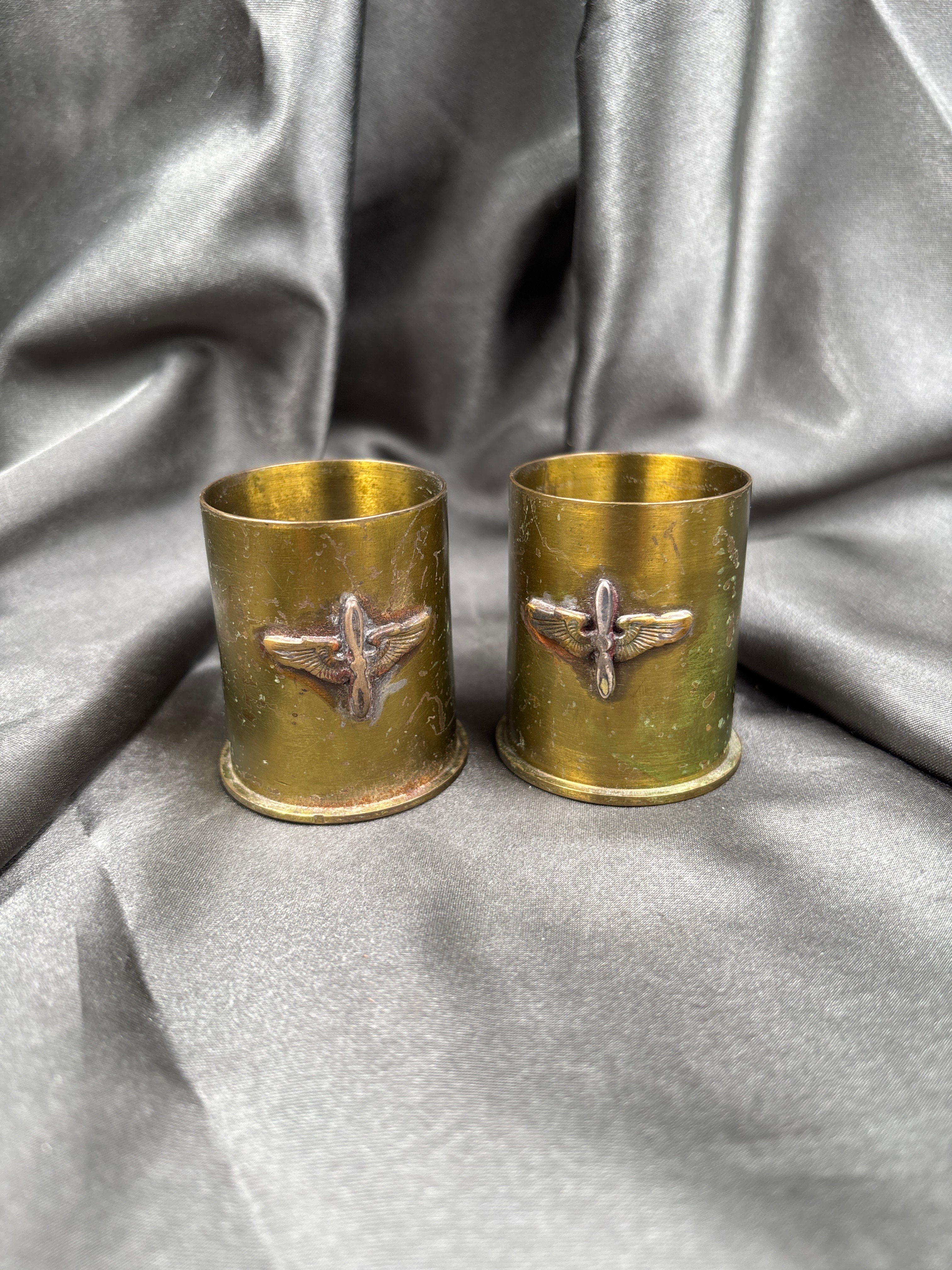 WWII US AIR CORPS TRENCH ART TUMBLERS