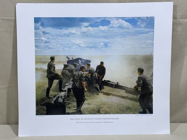 Original WWII German Military Themed Color Print, LIGHT FIELD HOWITZER SHOOTING