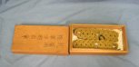 Original era manufacture. Rank of Second Lieutenant, gold wire boards with a single silver colored rank star. Black wool attaching straps with laces. The tops of the wire boards show some light fraying from age and wear. Original wooden case with handwritten kanji on its lid. Both top end pieces are missing.