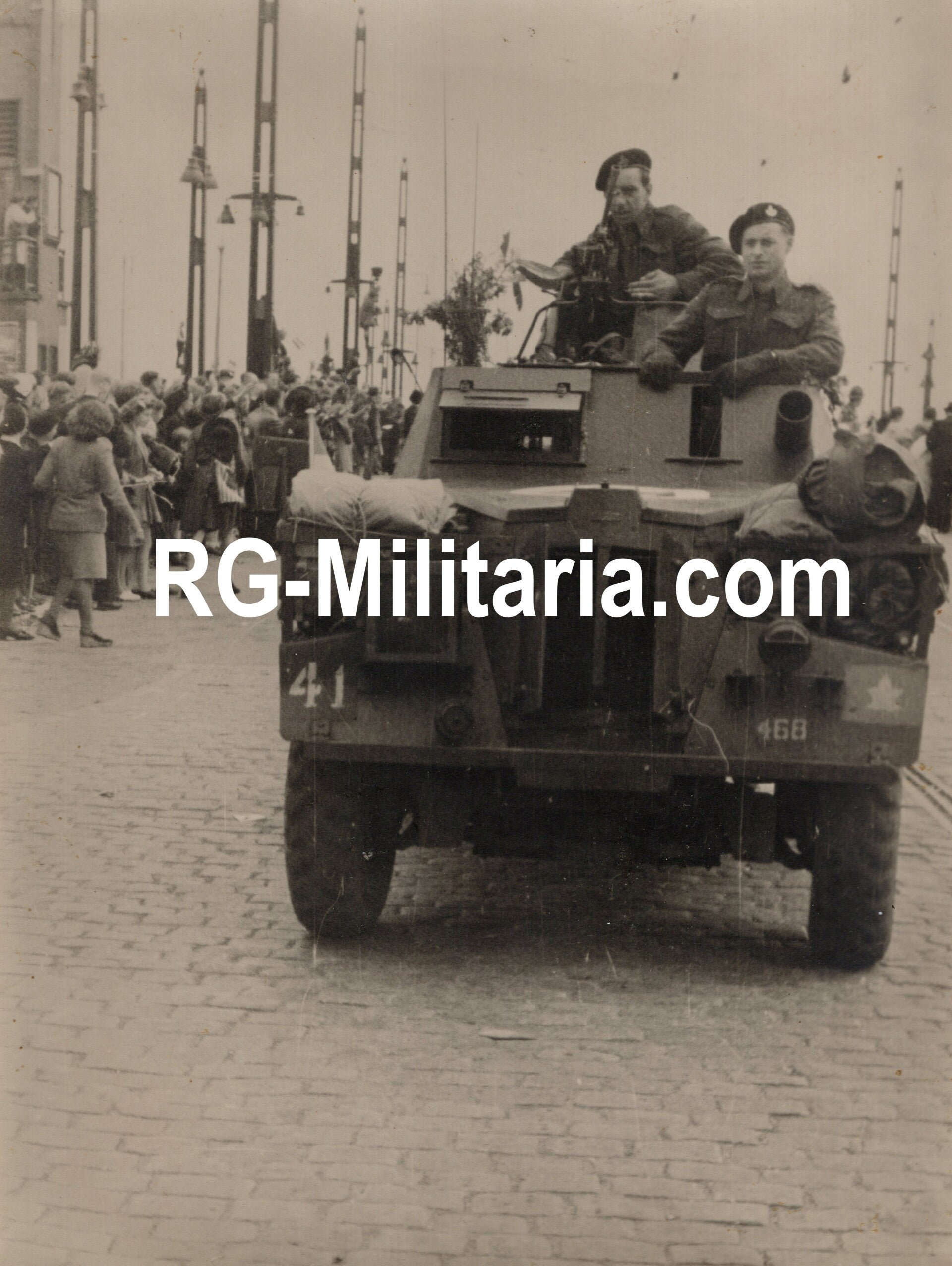 Original WW2 Dutch Liberation Press Photo - Canadians in an armoured vehicle liberate Amsterdam, Holland (1945)