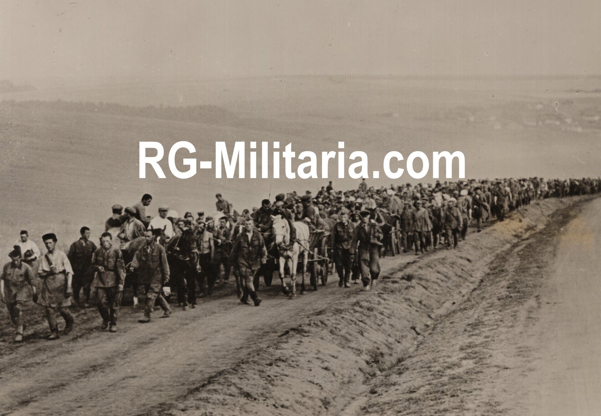 Original WW2 German Waffen SS Press Photo - Captured Russian Soviet POW soldiers (1941)