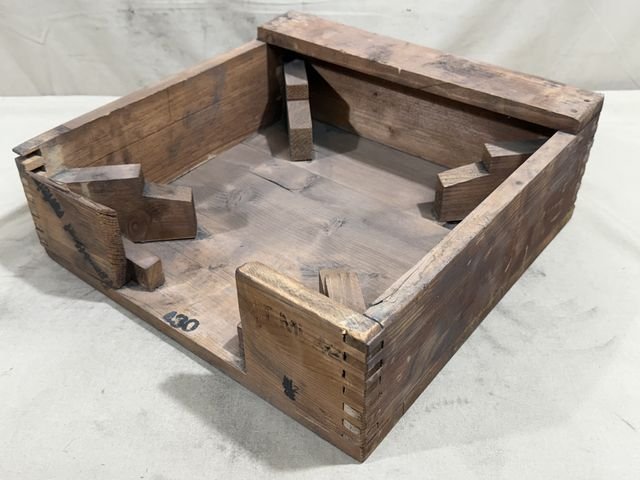 This is a 100% guaranteed original unused T-Mi 42 wooden transit box complete with the internal racking. This one has some damage. The box is approx. 14.25 x 14.25 x 5.25 inches in size. THIS IS NOT A REPRODUCTION!