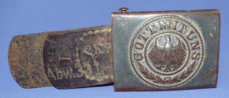 Reichswehr Enlisted Belt Buckle With Unit Marked Tab Dated 1926