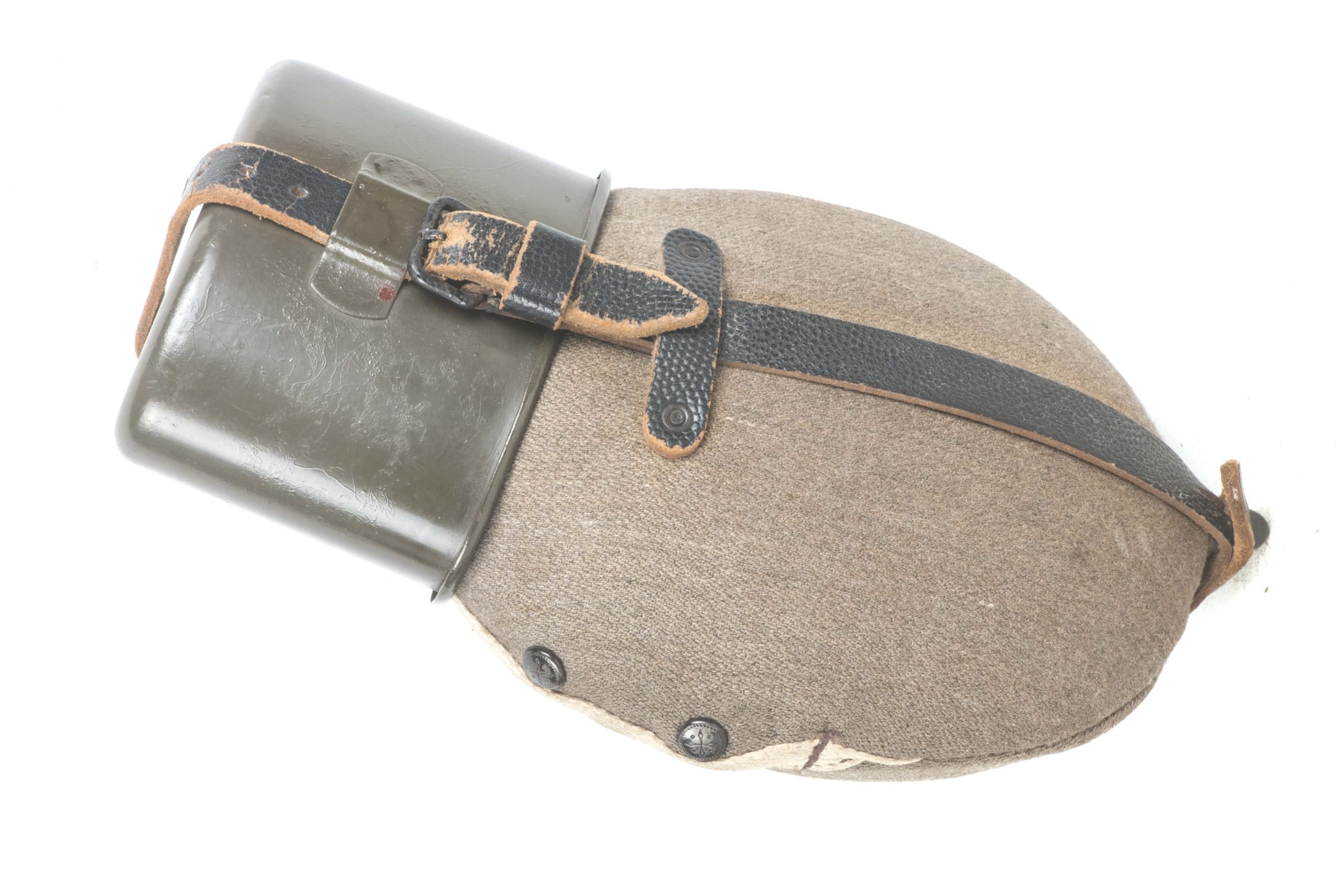 Rare M42 canteen marked RBNr. 0/0571/0118 with gabardine cover and riveted straps