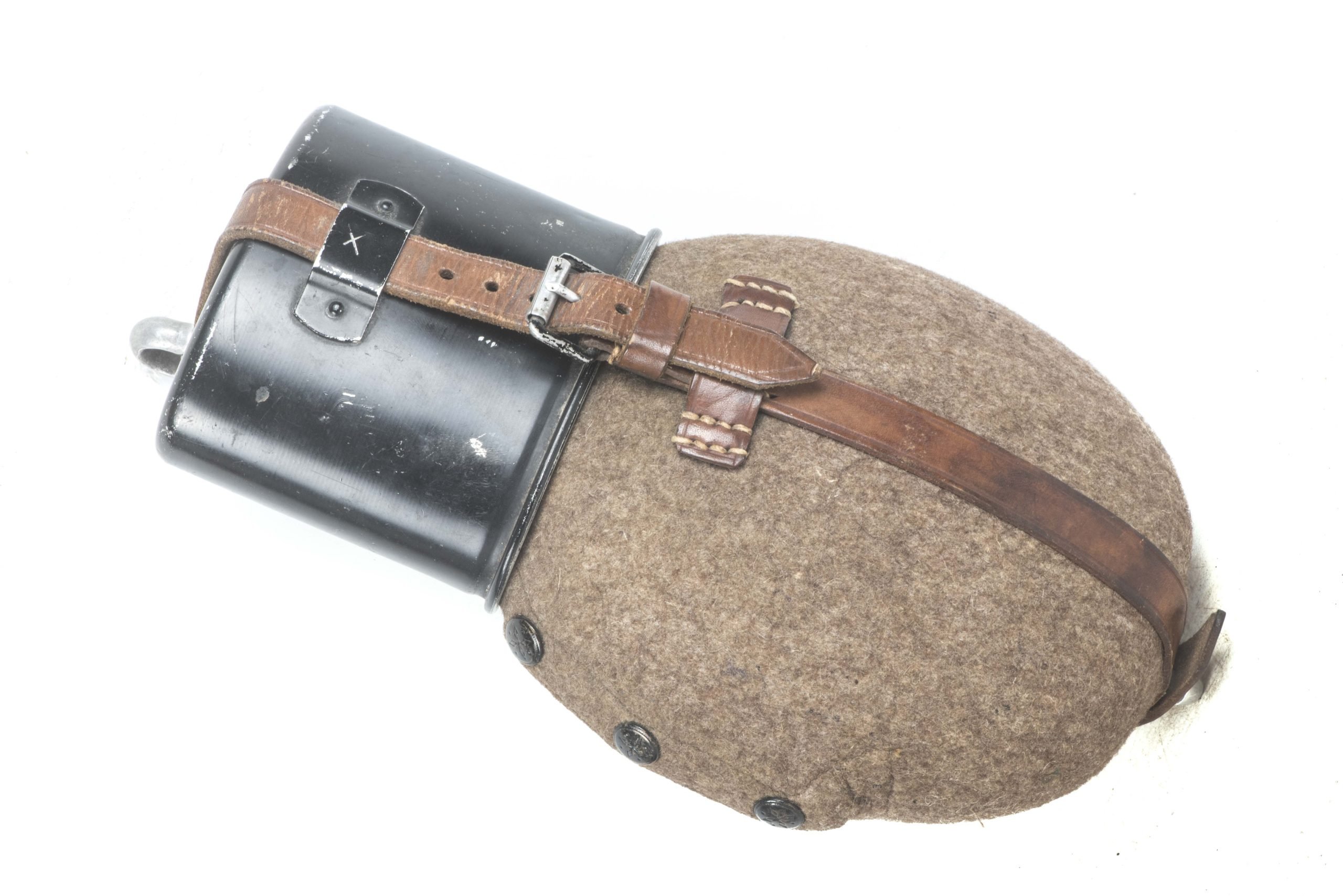 Textbook M31 canteen in very good, used condition. The canteen is all matching marked VDNS 40 which indicates production by byVereinigte Deutsche Nickelwerke/Nickel-und Stahlwerke, Schwerte in 1940.VDNS is a rather hard to encounter manufacturer! The canteen features aesthetic light brown coloured straps. Excellent example!