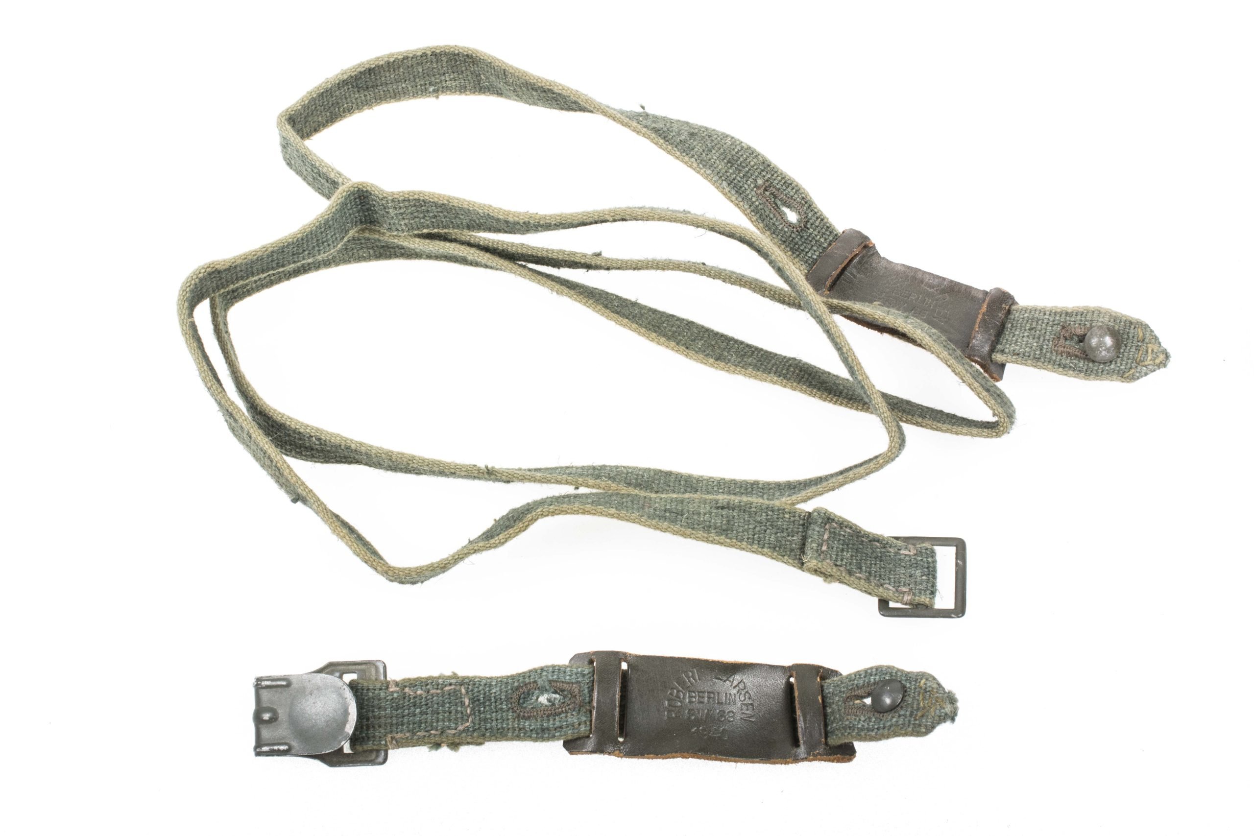 Perfect stone mint set of early gasmask straps marked Robert Larsen, Berlin SW68 1940