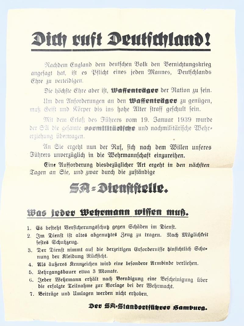 'Dich ruft Deutschland!' (Germany is calling for you!) - SA