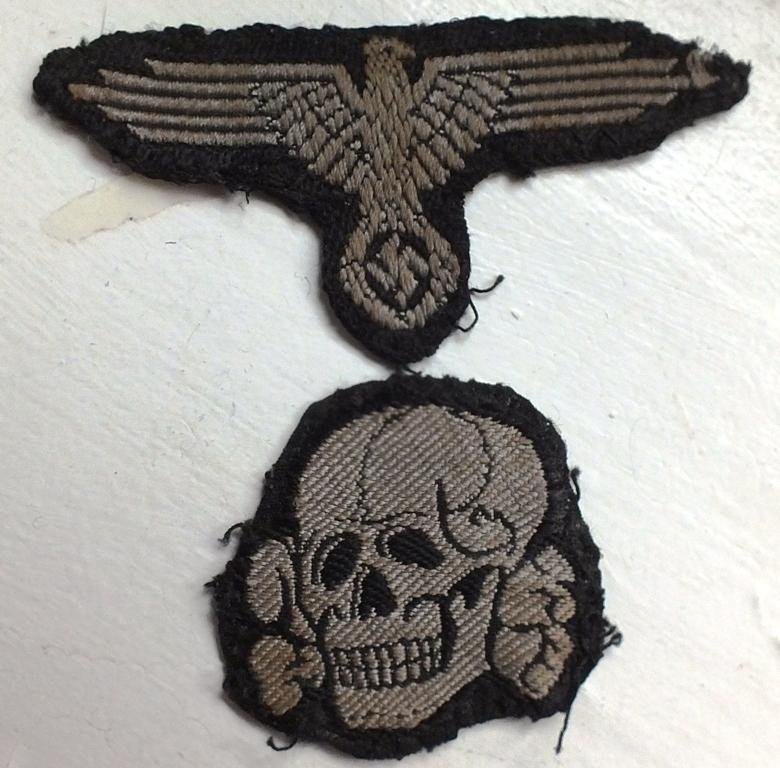Cap removed set showing light service wear, skull may have been removed from an album, set would be perfect for cap restoration or insignia collection.