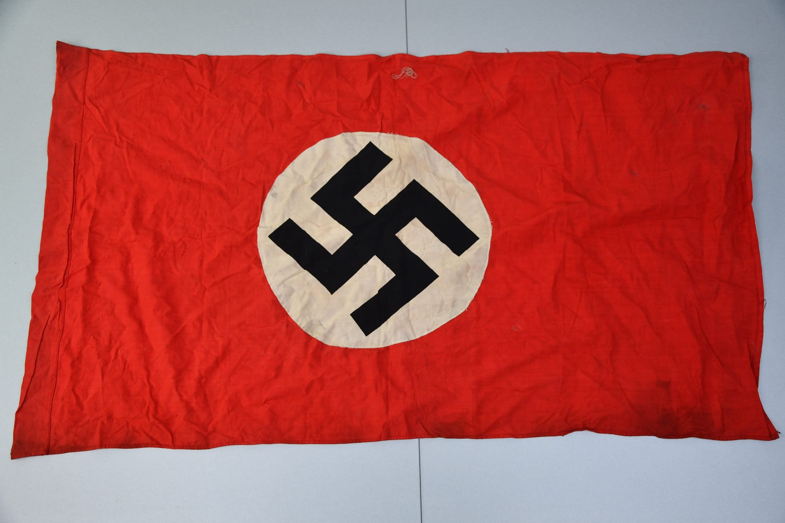 Genuine 'collectors size' NSDAP swastika house flag in good condition. Shows no damages. Only 60 x 110 centimeters so is perfect for display in a collection.