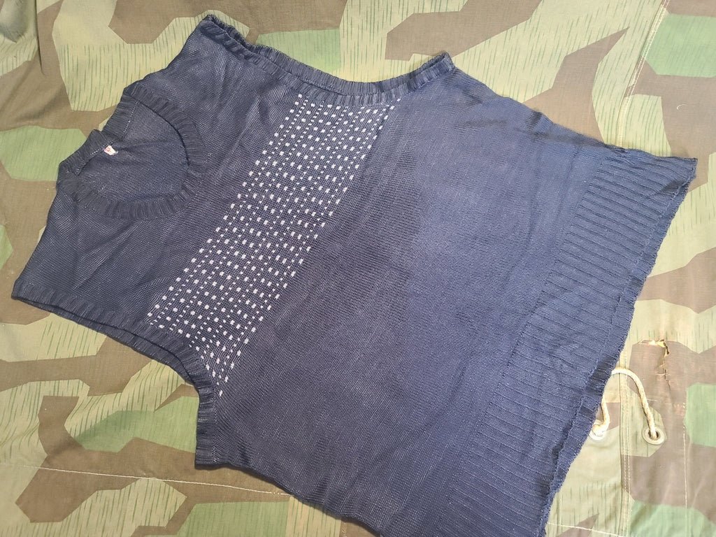 Original 1940s German men's sweater vest. It is in very good condition with no holes. Some light wear and pulls on the material. It has that nice slinky soft eel that I only find on early German synthetic material. Size 46 tag (European size).Unstretched, armpit to armpit is 38' and the length is about 23'. I can put it on easily and I am a size 46 in US sizes, but it is not at all flattering. I believe it would fit anyone from a 36' chest up to 40' quite well.