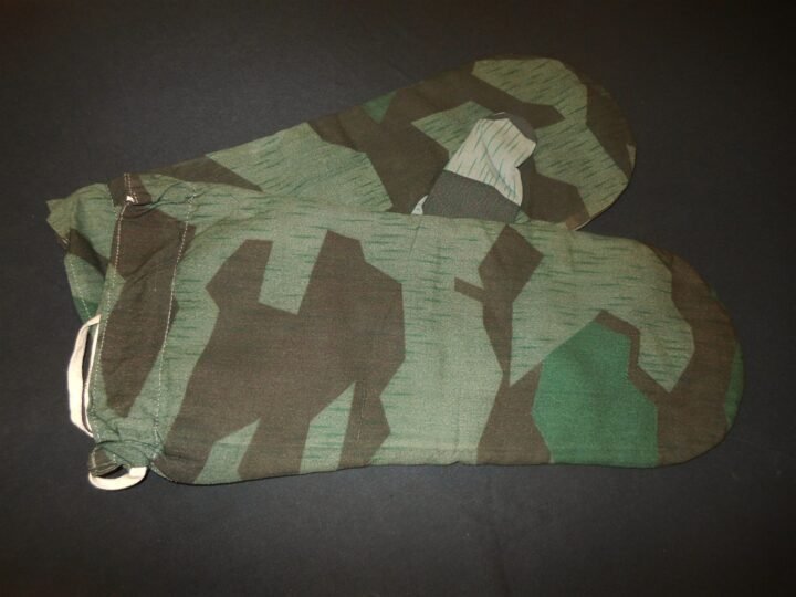You are bidding on a FANTASTIC and 100% ORIGINAL set of WW2 German Splinter Pattern Camouflage Winter Mittens!The Splinter Pattern Reversible Winter Mittens were a standard issue item, and were distributed to all ELITE EM/NCO's for the winter season. As with all other winter garments they were to be returned to the units storage depot at the end of the season.Made of water-proofed cotton/rayon, these reversible mittens are in SUPERB unused condition! They feature the standard Splinter pattern camouflage, consisting of shades of greens, tans, and browns. They are reversible to white, and also feature a string that connects them together. They have a prominent RBn Number stamped on the inside of each. LARGE in size, these are aVERY RARE item, it would make a SUPERB addition to any collection or display!