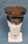 Original period manufacture. German style with a hight front peak officers hat in Italian gray-green gaberdine wool. Nice quality gold wire hat device on the front of the hat, two gold brocade bands indicating the rank of Lieutenant. Sweat diamond on the interior of the hat with a Turin (Torino) makers name and logo. The hat shows normal age and wear but no damage, beyond a few pinpoint moth bites on the top of the hat.