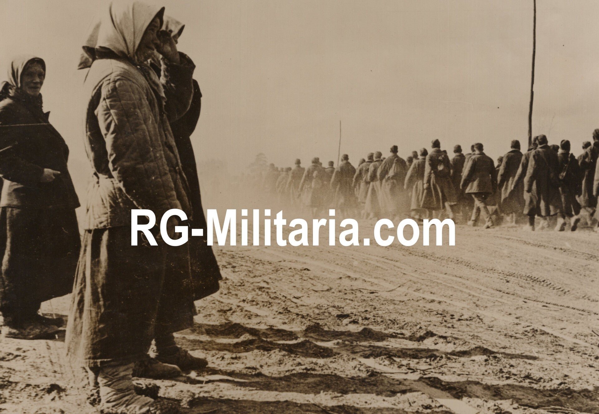 Original WW2 German Press Photo - Woman crying for Soviet POW soldiers, Eastern Front (1941)